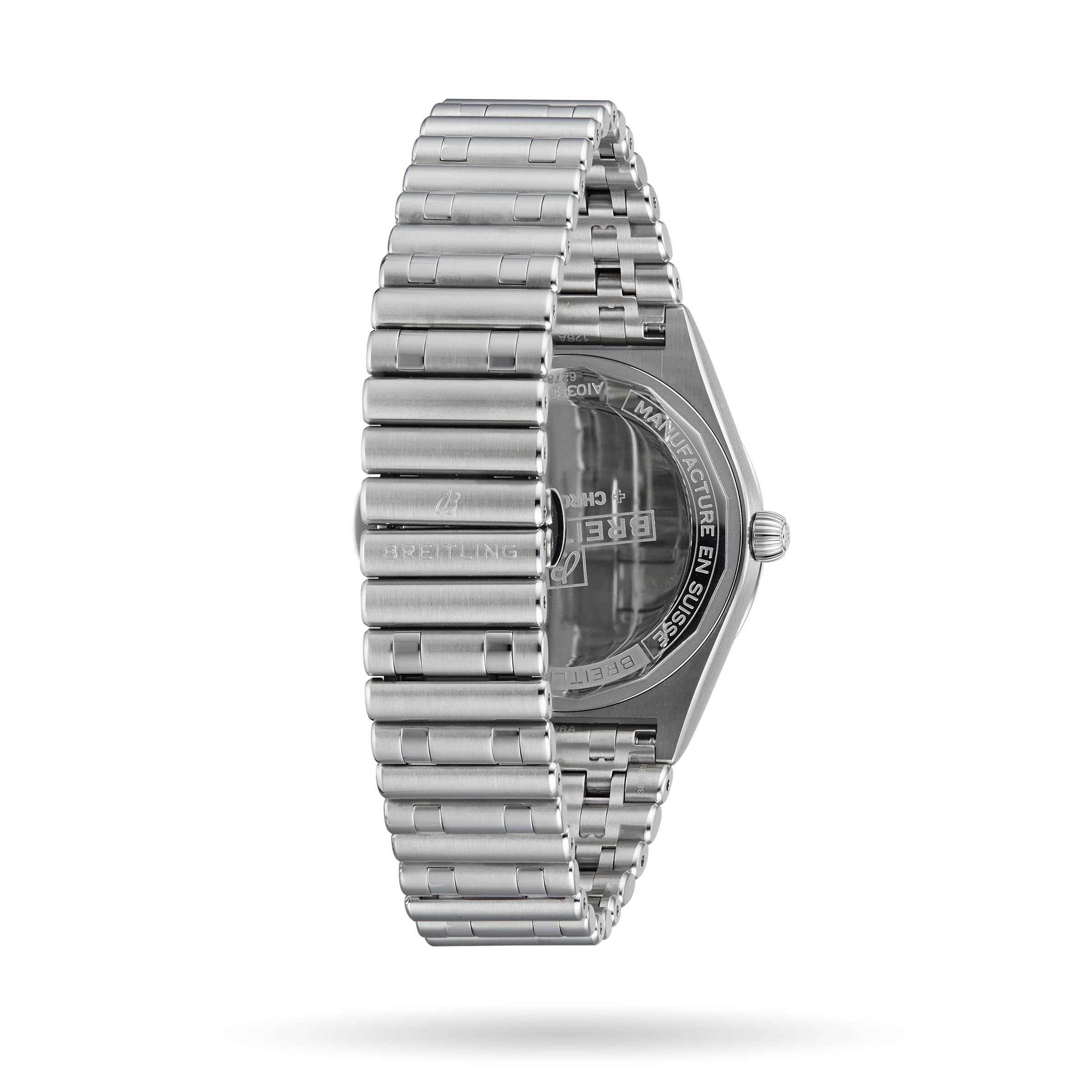 The stainless steel case is presented on a co-ordinating bracelet for an extra touch of refinement, while power is provided by the Breitling 10 calibre movement, certified by COSC.