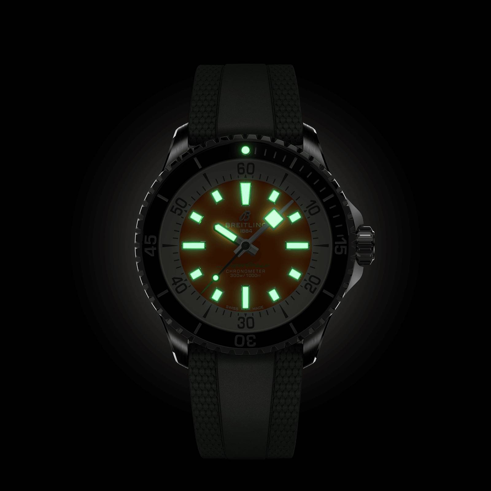 Performance and style for all your water-based pursuits. In the 1960s, the new sport of scuba diving was all the rage. For divers, timing was everything, and Breitling set out to give them the most clear-cut dive watch possible by eliminating any feature that didn�t support their lifesaving needs underwater. This pared-down watch was named the Slow Motion. What remained were clean lines, chunky luminescent indexes, squared-off hands and a high-contrast dial ring, all aimed at maximum legibility. Practical, yes. But what people really fell in love with was the look. The new Superocean retraces the Slow Motion's celebrated design codes, while adding modern features, like a ceramic-inlayed bezel and brightly colored dials. Broad hands and indexes in luminescent Super-LumiNova� allow for easy readability underwater. The watch is water resistant to 300 m (1000 ft), as well as being shock-, sand- and saltwater-resistant. The bronze version uses a special alloy that has excellent resistance to corrosion, yet will still develop a subtle patina over time that makes the watch even more unique. The two strap options (rubber and metal bracelet) have a folding clasp that allows for micro-adjustments of up to 15 mm for easy wear over rashies and wetsuits. Its scratch-proof ceramic inlayed bezel will never wear or fade. For safety, the bezel is uni-directional on most sizes and bi-directional with a patented lock on the 46 mm. Best of all, this is no longer strictly a dive watch�surf with it, swim with it, hit the beach bar with it, then wear it out to dinner. The Superocean perfectly balances the nostalgia of its heritage with a fresh new look.