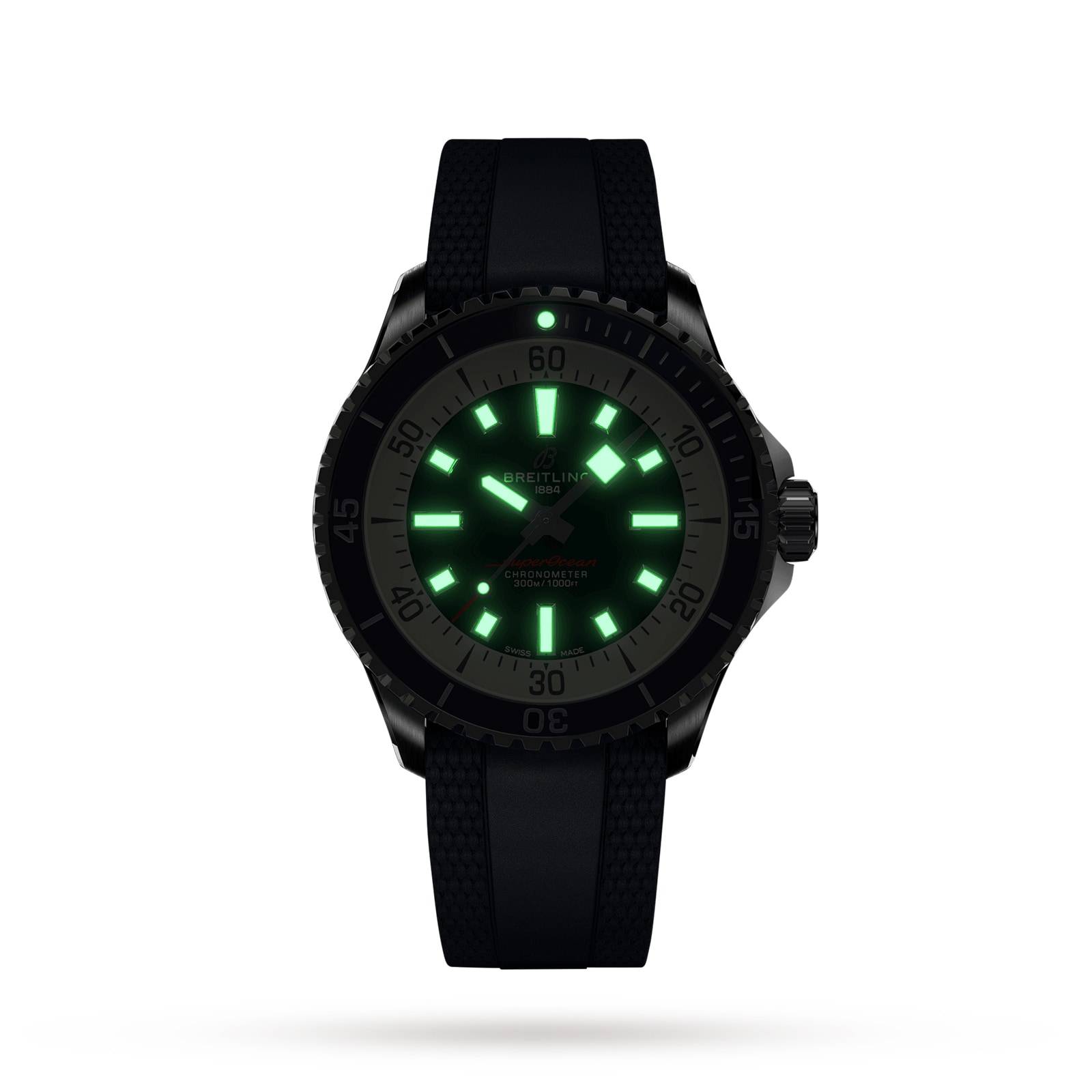 Powered by the automatic Breitling 17 calibre movement, this performance-focused timepiece is water resistant to 30 bar (300 metres), making it suitable for surfing, swimming, and diving.