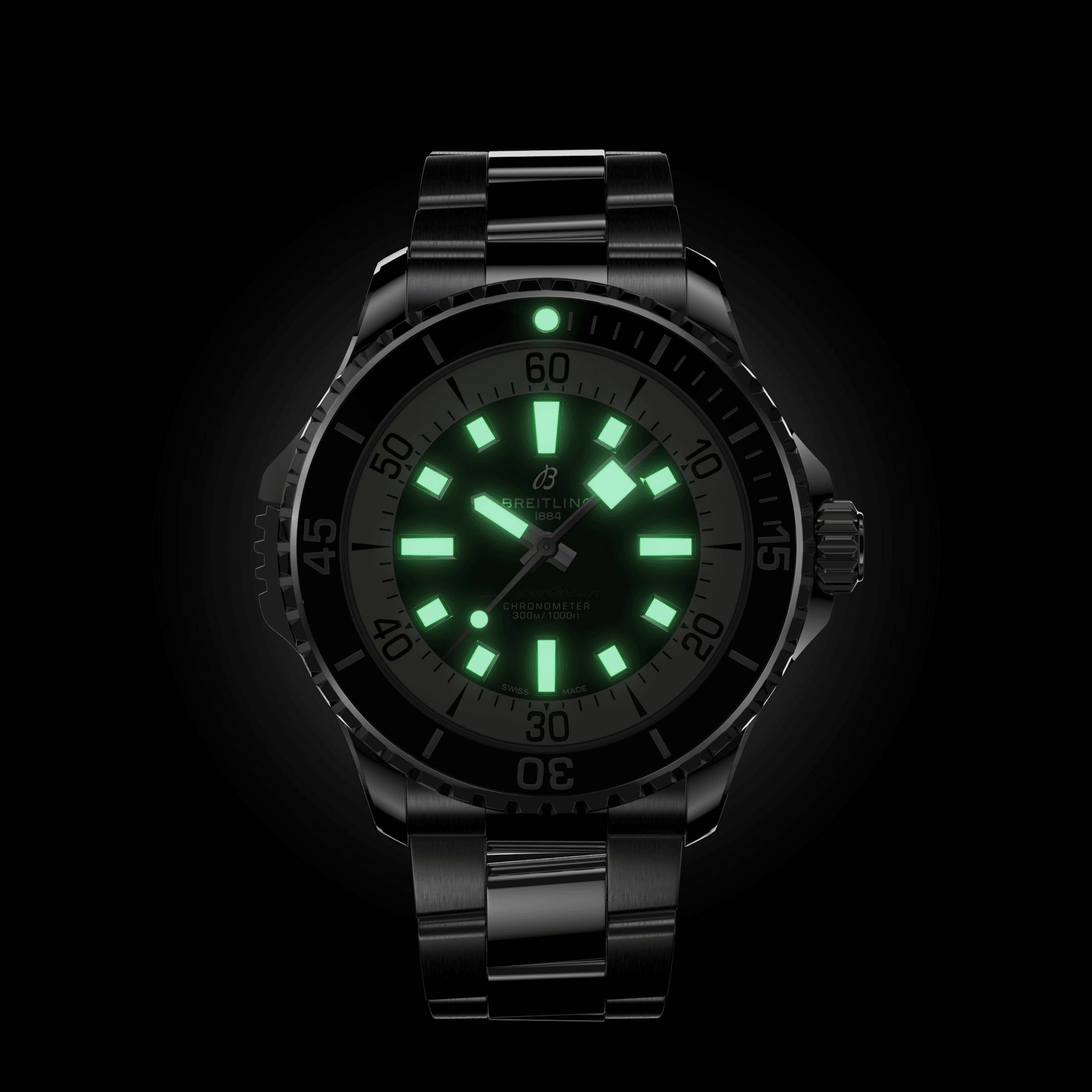 Performance and style for all your water-based pursuits. In the 1960s, the new sport of scuba diving was all the rage. For divers, timing was everything, and Breitling set out to give them the most clear-cut dive watch possible by eliminating any feature that didn’t support their lifesaving needs underwater. This pared-down watch was named the Slow Motion. What remained were clean lines, chunky luminescent indexes, squared-off hands and a high-contrast dial ring, all aimed at maximum legibility. Practical, yes. But what people really fell in love with was the look. The new Superocean retraces the Slow Motion's celebrated design codes, while adding modern features, like a ceramic-inlayed bezel and brightly colored dials. Broad hands and indexes in luminescent Super-LumiNova® allow for easy readability underwater. The watch is water resistant to 300 m (1000 ft), as well as being shock-, sand- and saltwater-resistant. Its scratch-proof ceramic inlayed bezel will never wear or fade. For safety, the bezel is uni-directional on most sizes and bi-directional with a patented lock on the 46 mm. Best of all, this is no longer strictly a dive watch—surf with it, swim with it, hit the beach bar with it, then wear it out to dinner. The Superocean perfectly balances the nostalgia of its heritage with a fresh new look.