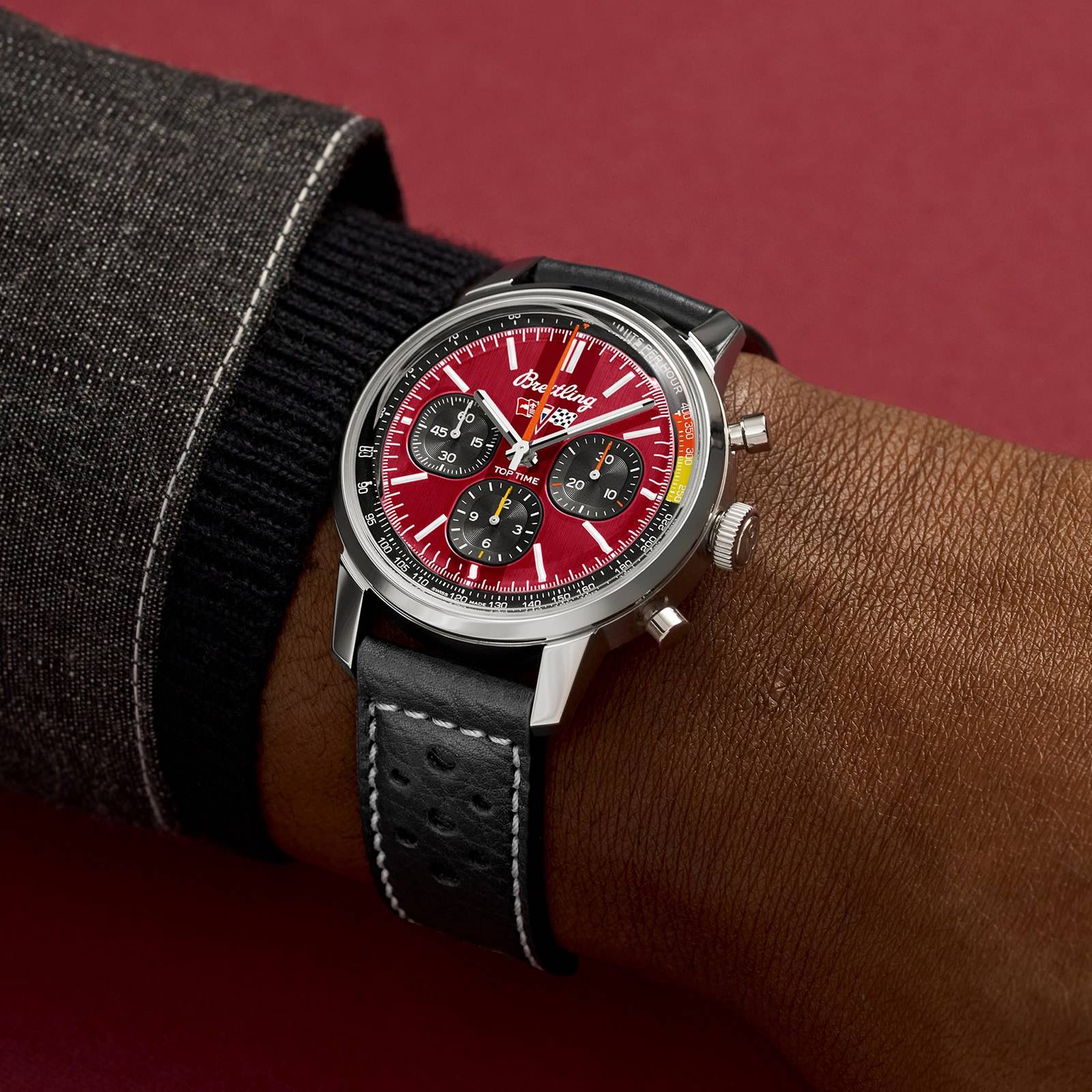 The 1960s was a decade of experimentation, fun, freedom and energy. Whether cruising on a motorcycle or revving up a sportscar, living life at full speed was the order of the day. Willy Breitling felt this change of pace and set out to design an unconventional chronograph that would capture the verve of era. He called it the Top Time.