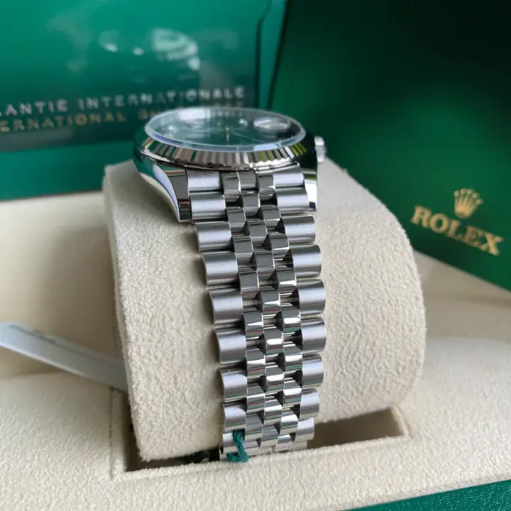 The Rolex fluted bezel is a mark of distinction. Originally, the fluting of the Oyster bezel had a functional purpose: it served to screw the bezel onto the case helping to ensure the waterproofness of the watch. It was therefore identical to the fluting on the case back, which was also screwed onto the case for waterproofness, using specific Rolex tools. Over time, the fluting became an aesthetic element, a genuine Rolex signature feature. Today the fluted bezel is a mark of distinction, in gold on this Datejust 36.