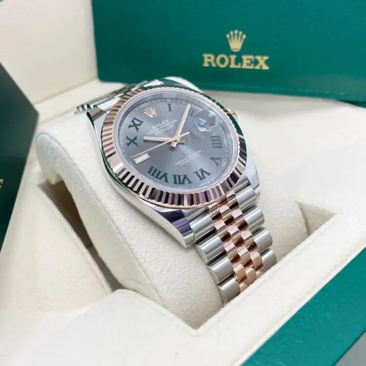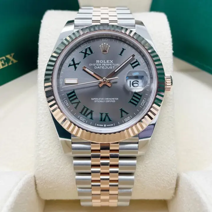The Rolex fluted bezel is a mark of distinction. Originally, the fluting of the Oyster bezel had a functional purpose: it served to screw the bezel onto the case helping to ensure the waterproofness of the watch. It was therefore identical to the fluting on the case back, which was also screwed onto the case for waterproofness, using specific Rolex tools. Over time, the fluting became an aesthetic element, a genuine Rolex signature feature. Today the fluted bezel is a mark of distinction, in gold on this Datejust 41.