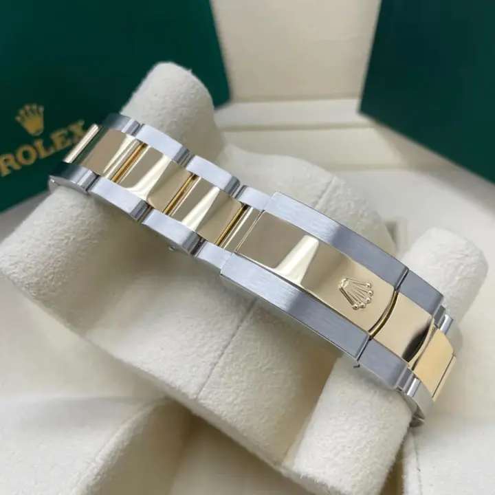 Gold is coveted for its lustre and nobility. Steel reinforces strength and reliability. Together, they harmoniously combine the best of their properties. A true Rolex signature, Rolesor has featured on Rolex models since the early 1930s, and was trademarked as a name in 1933. It is one of the prominent pillars of the Oyster collection.