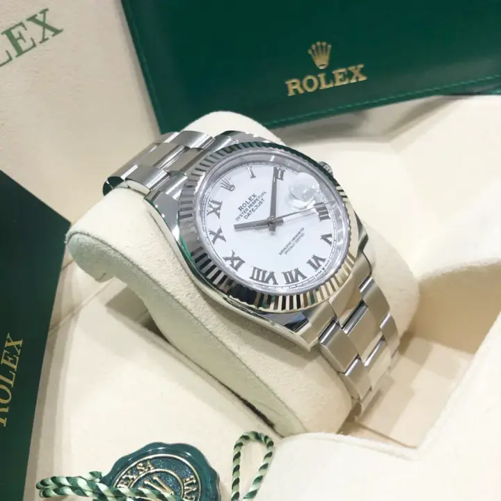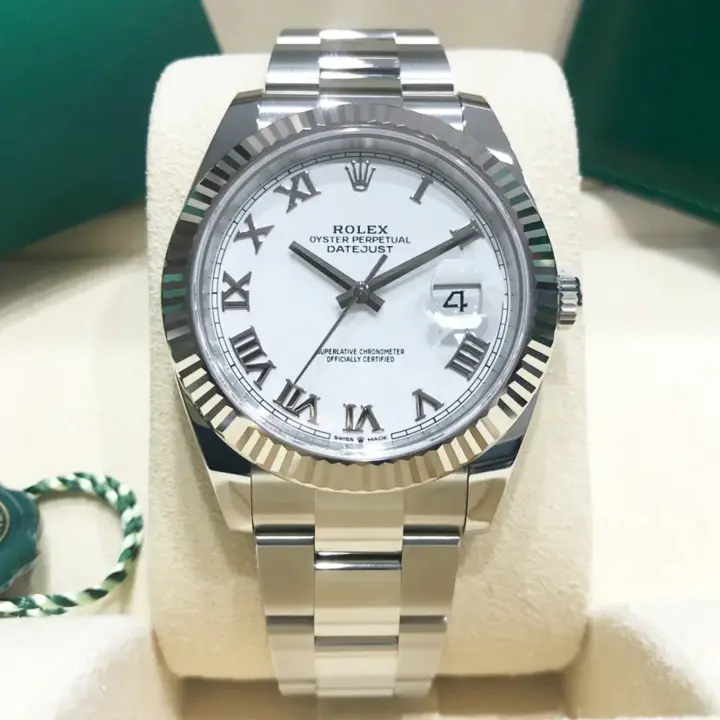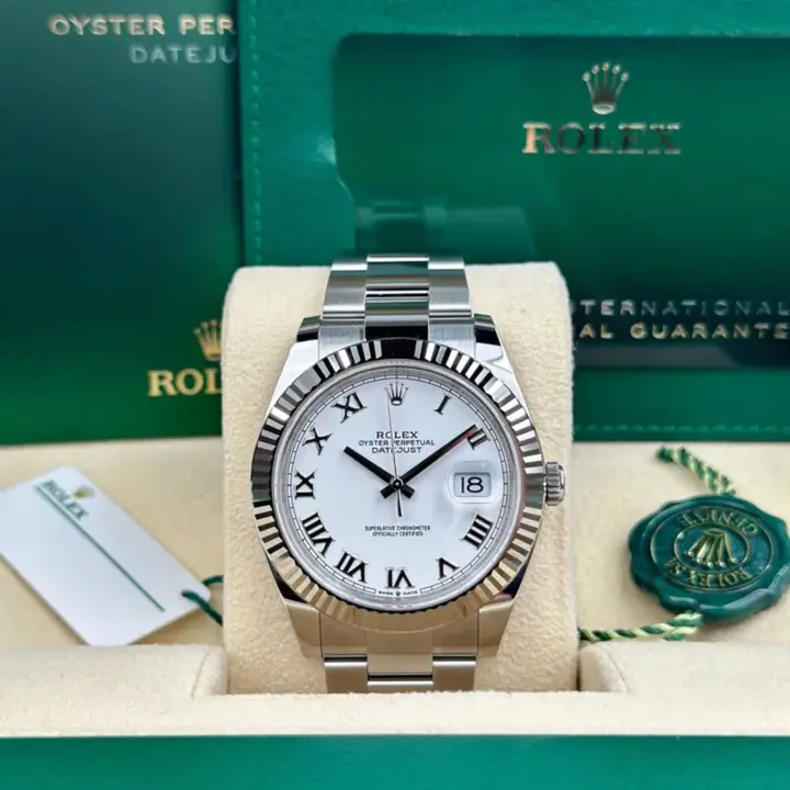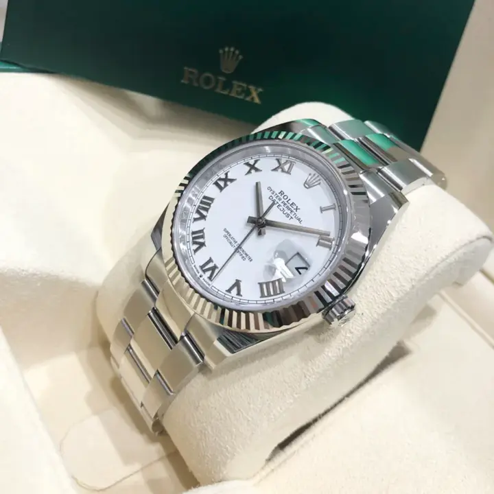 The Rolex fluted bezel is a mark of distinction. Originally, the fluting of the Oyster bezel had a functional purpose: it served to screw the bezel onto the case helping to ensure the waterproofness of the watch. It was therefore identical to the fluting on the case back, which was also screwed onto the case for waterproofness, using specific Rolex tools. Over time, the fluting became an aesthetic element, a genuine Rolex signature feature. Today the fluted bezel is a mark of distinction, in gold on this Datejust 41.