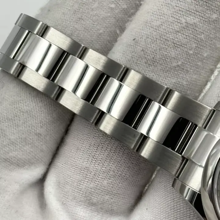 The Oyster bracelet is a perfect alchemy of form and function, aesthetics and technology, designed to be both robust and comfortable. It is equipped with an Oysterclasp and the Easylink comfort extension link, also exclusive to Rolex. This ingenious system allows the wearer to increase the bracelet length by approximately 5 mm, providing additional comfort in any circumstance.