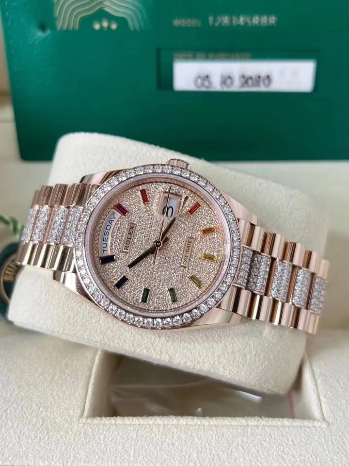 Rolex DAY-DATE Oyster, 36 mm, Everose gold and diamonds M128345RBR-0043