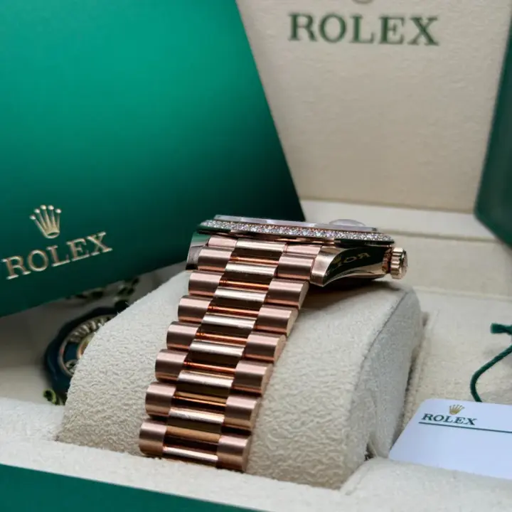 To preserve the beauty of its pink gold watches, Rolex created and patented an exclusive 18 ct pink gold alloy cast in its own foundry: Everose gold. Introduced in 2005, 18 ct Everose is used on all Rolex Oyster models in pink gold.