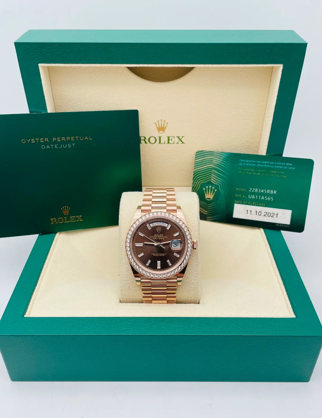 ROLEX Day-Date Oyster, 40 mm, diamonds and eternity rose gold Model number 228345RBR-0006