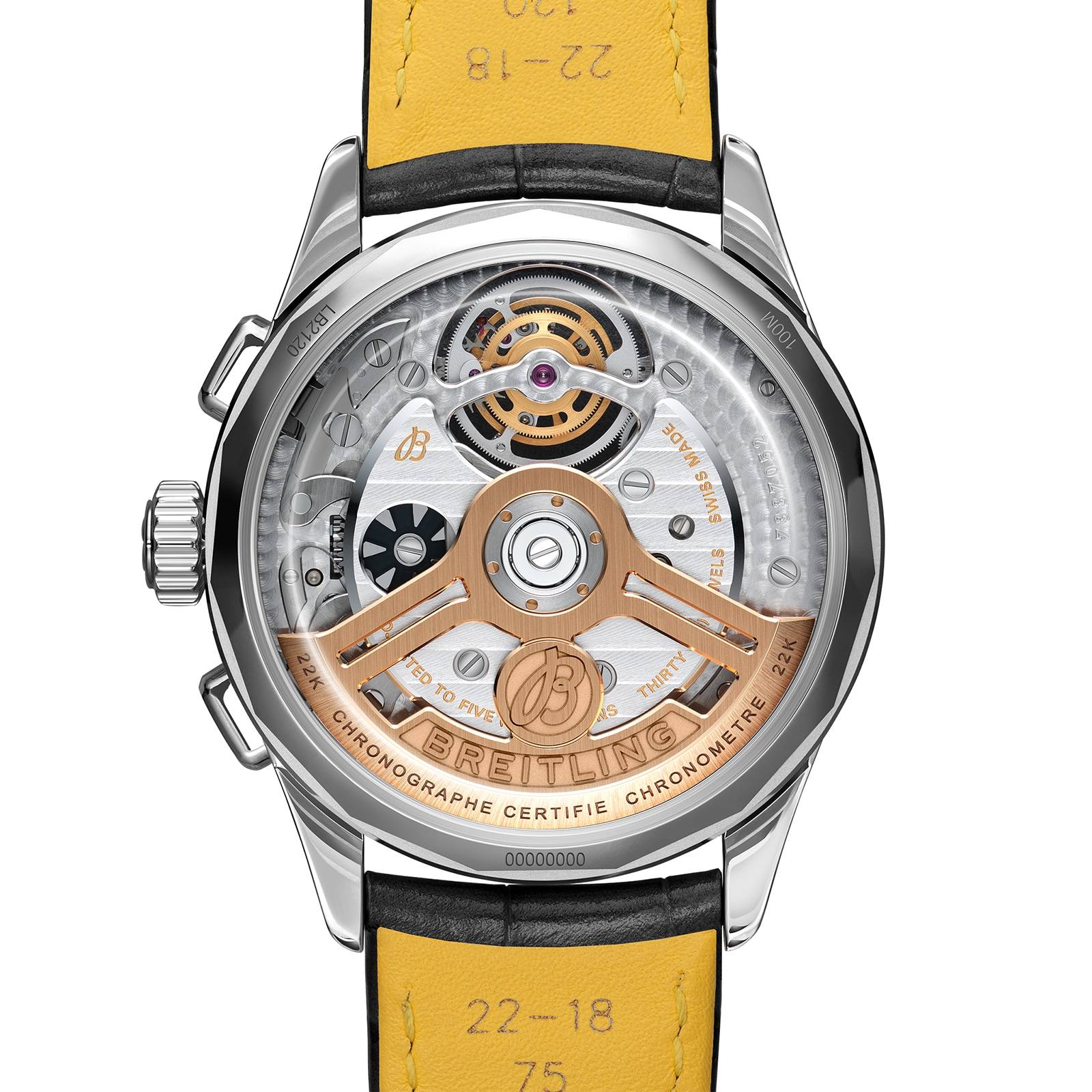 The Premier Tourbillon is a series for people who love the mechanics and magic of watchmaking. Named for each of the Breitling founders, Leon, Gaston and Willy, the three watches feature the stylized square pushers and Arabic numerals that are hallmarks of the Premier line. Their symmetrical dial design, harmonious interplay of numerals and tone-on-tone colorways perfectly balance the undisputed star of the show the tourbillon which takes center stage at 12 o'clock. The open sapphire crystal caseback is domed to allow for full appreciation of the B21 movement, whose oscillating weight and tourbillon appear in contrasting 18k gold. Breitling worked hand-in-hand with the boutique movement maker La Joux-Perret to develop the exquisite B21 movement that takes the uncommon step of combining a tourbillon with a chronograph to make this trio of watches so distinctively Breitling.