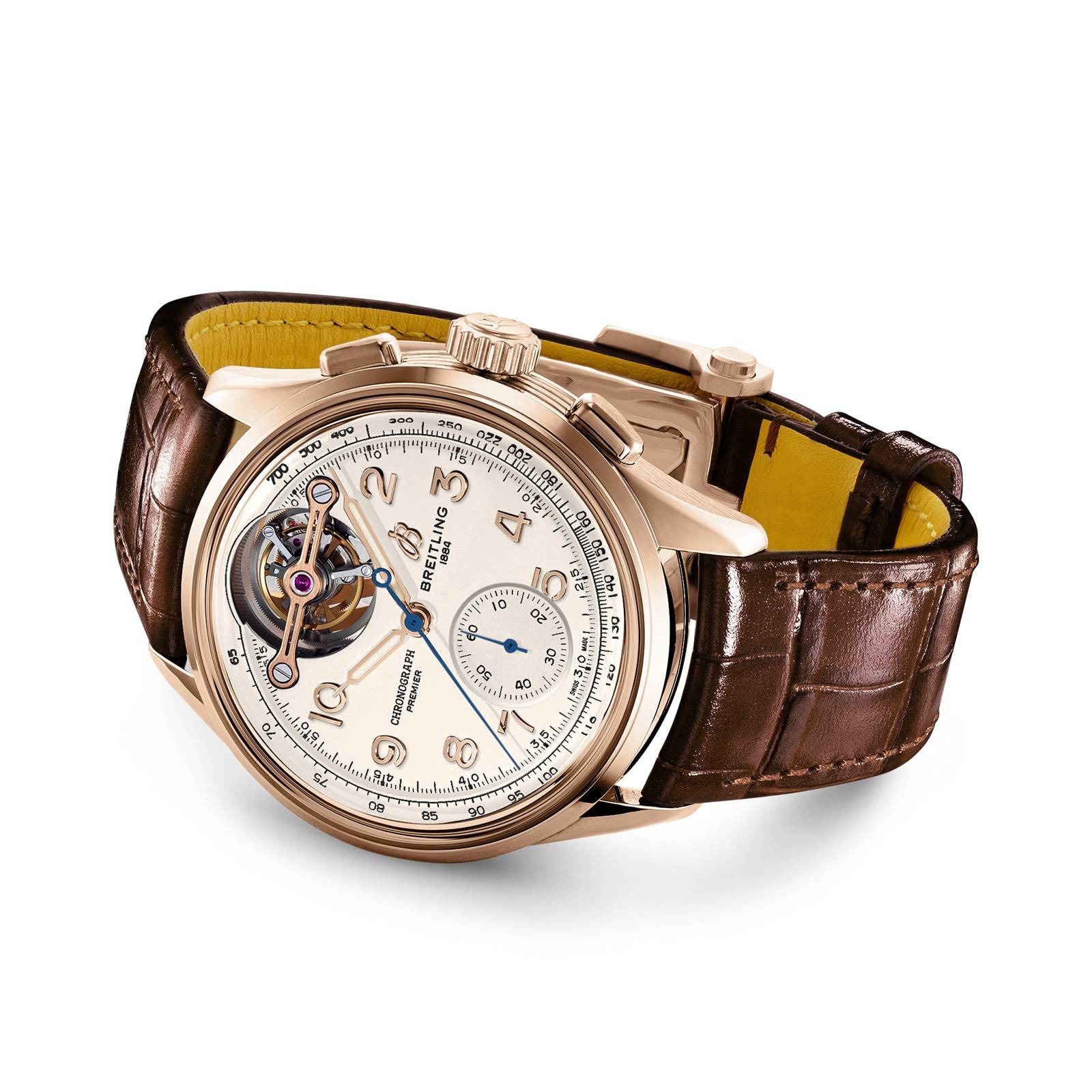 The Premier Tourbillon is a series for people who love the mechanics and magic of watchmaking. Named for each of the Breitling founders, Leon, Gaston and Willy, the three watches feature the stylized square pushers and Arabic numerals that are hallmarks of the Premier line. Their symmetrical dial design, harmonious interplay of numerals and tone-on-tone colorways perfectly balance the undisputed star of the show the tourbillon which takes center stage at 12 o'clock. The open sapphire crystal caseback is domed to allow for full appreciation of the B21 movement, whose oscillating weight and tourbillon appear in contrasting 18k gold. Breitling worked hand-in-hand with the boutique movement maker La Joux-Perret to develop the exquisite B21 movement that takes the uncommon step of combining a tourbillon with a chronograph to make this trio of watches so distinctively Breitling.