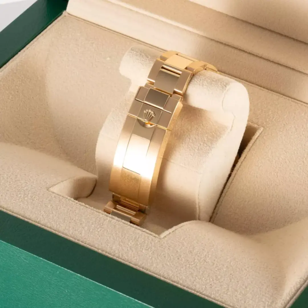 By operating its own exclusive foundry, Rolex has the unrivalled ability to cast the highest quality 18 ct gold alloys. According to the proportion of silver, copper, platinum or palladium added, different types of 18 ct gold are obtained: yellow, pink or white. They are made with only the purest metals and meticulously inspected in an in-house laboratory with state-of-the-art equipment, before the gold is formed and shaped with the same painstaking attention to quality. Rolex's commitment to excellence begins at the source.