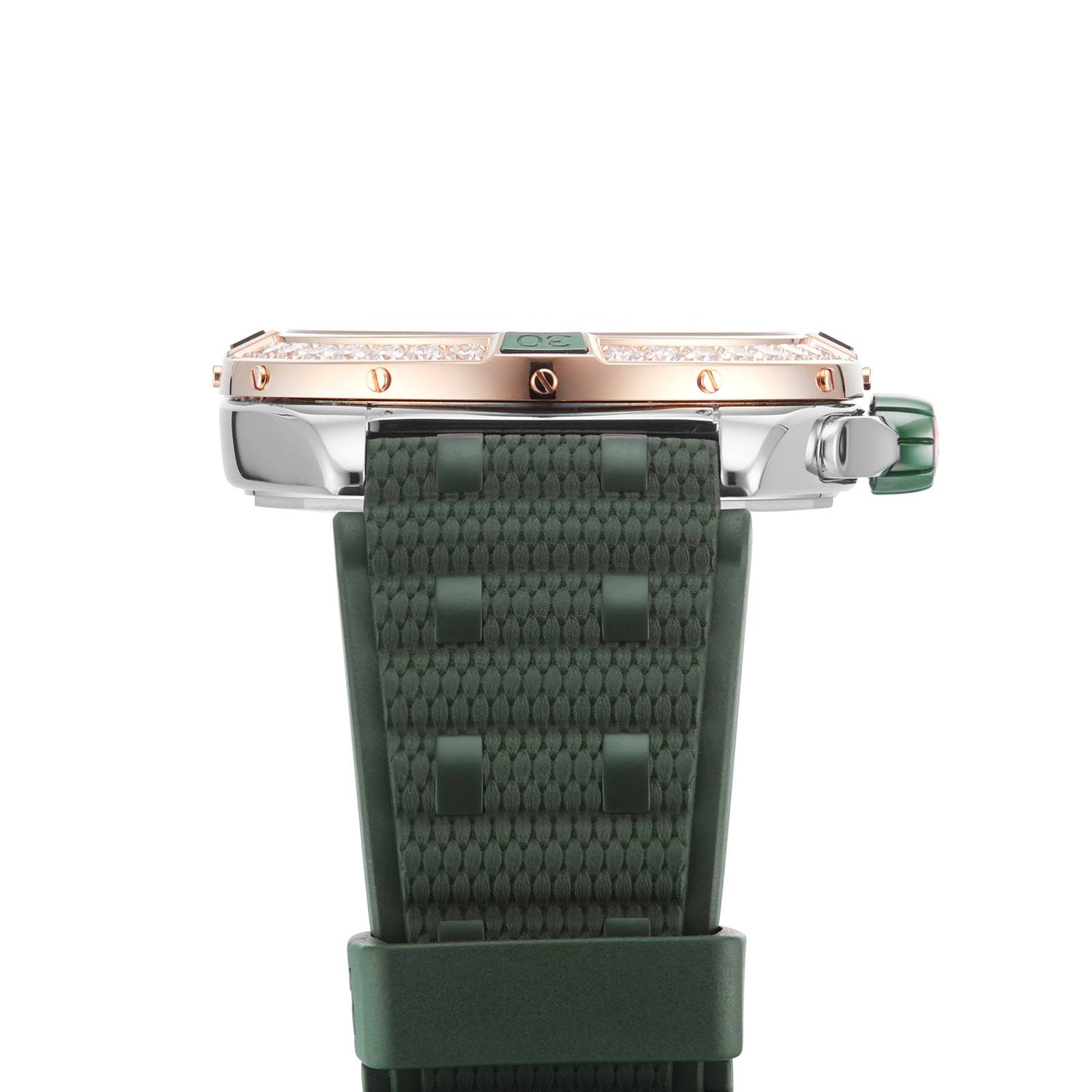 Aside from its enhanced presence, the Automatic 38 also has a radiant side. Oversized lab-grown diamonds make the rounds of its 18k red gold or stainless-steel bezel. Its dial colours add just the right amount of eye candy.