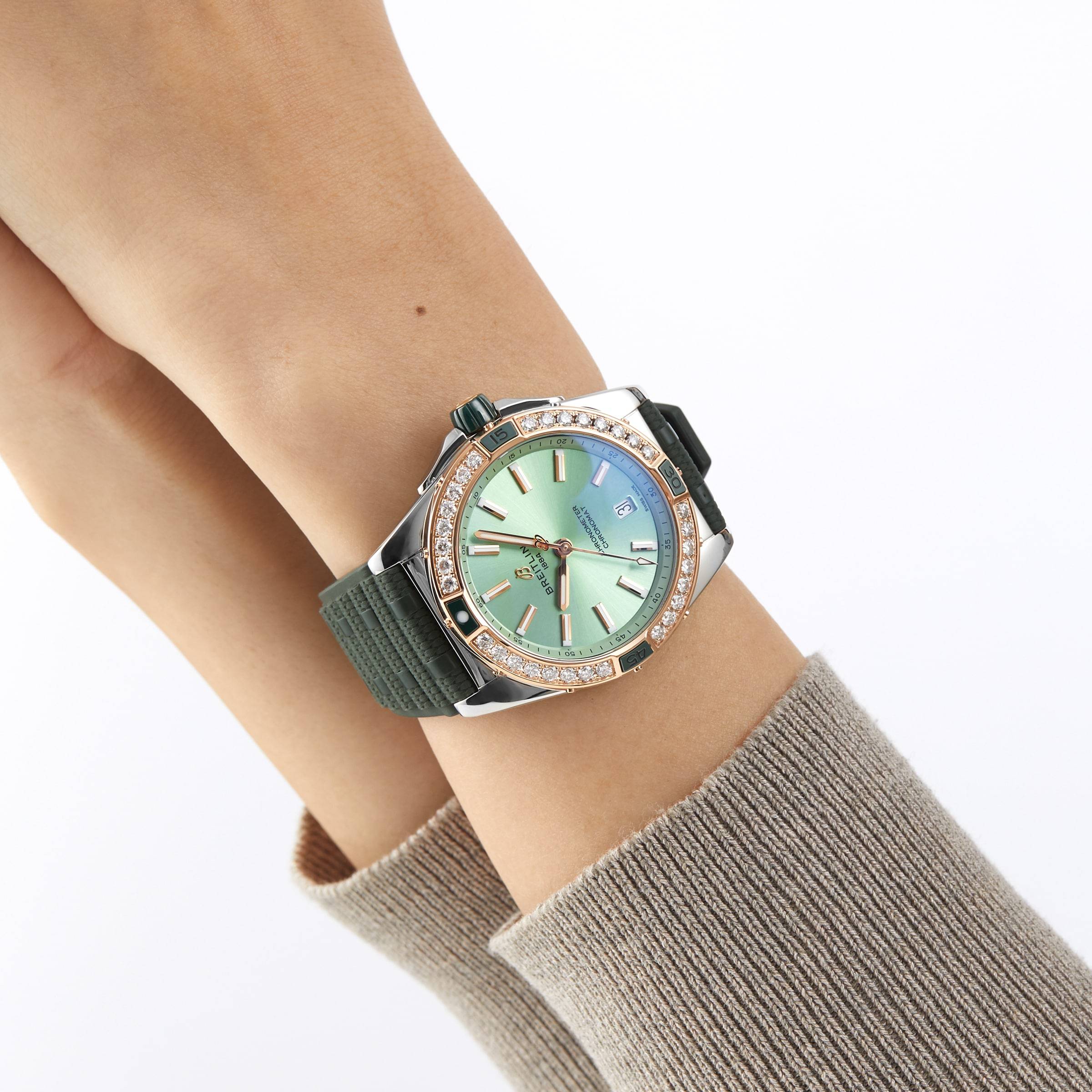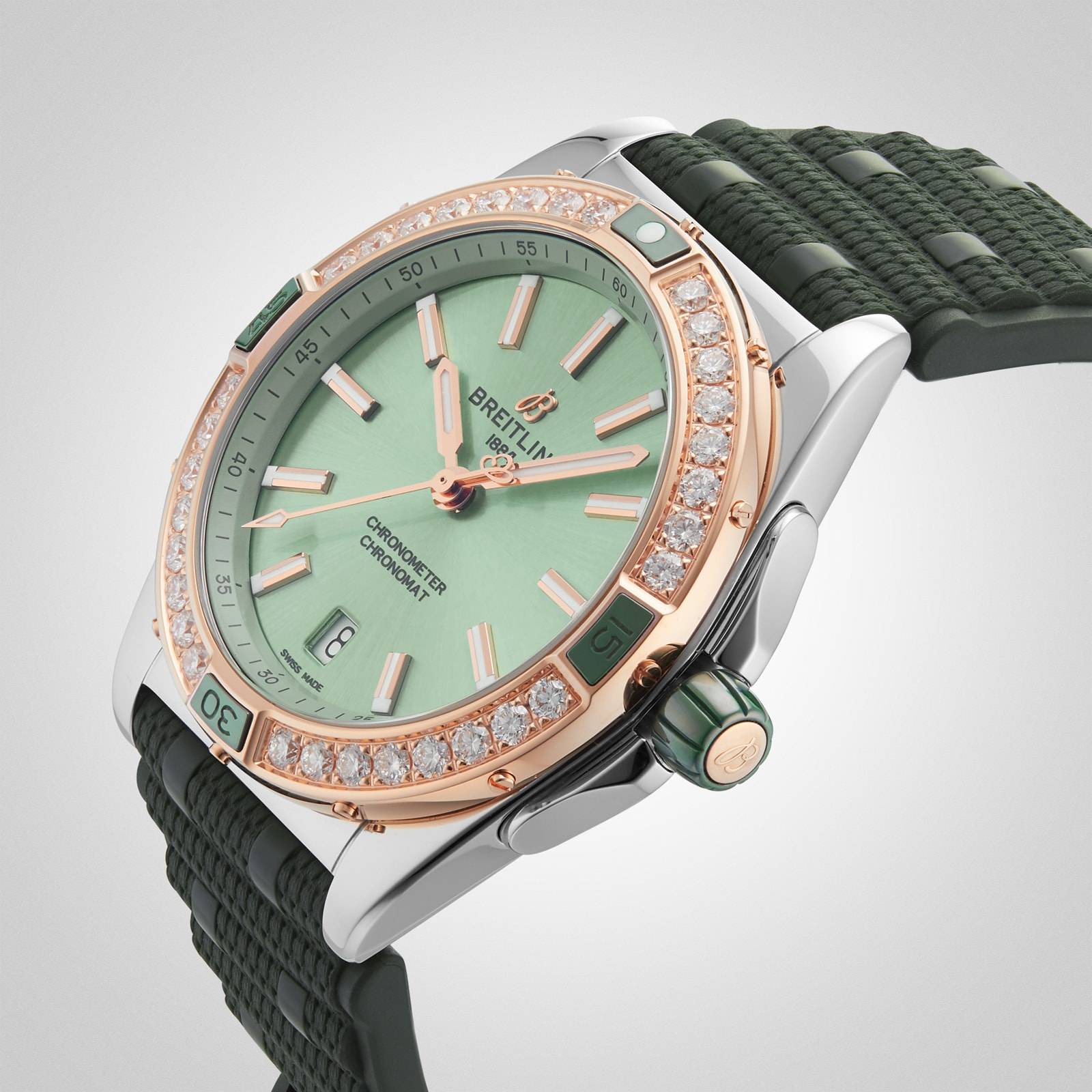 Breitling Super Chronomat Automatic 38 Green Stainless Steel & 18ct Rose Gold Rubber Strap-P17532166