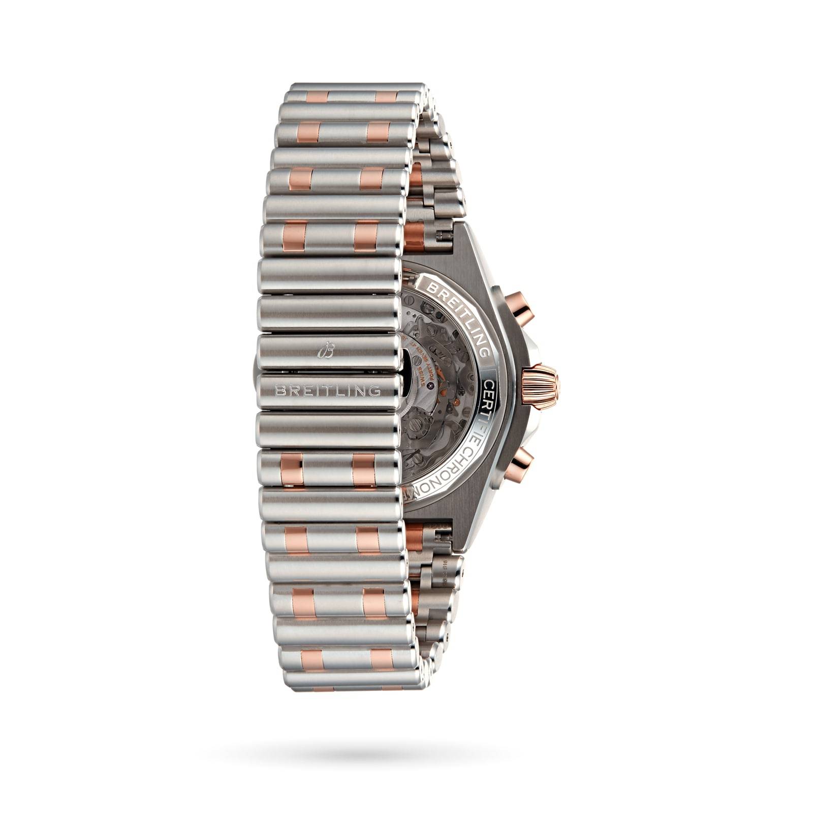 This Chronomat B01 42 is characterised by a robust, stainless steel and 18K red gold case, the iconic bezel with four rider tabs, and the signature Rouleaux bracelet.