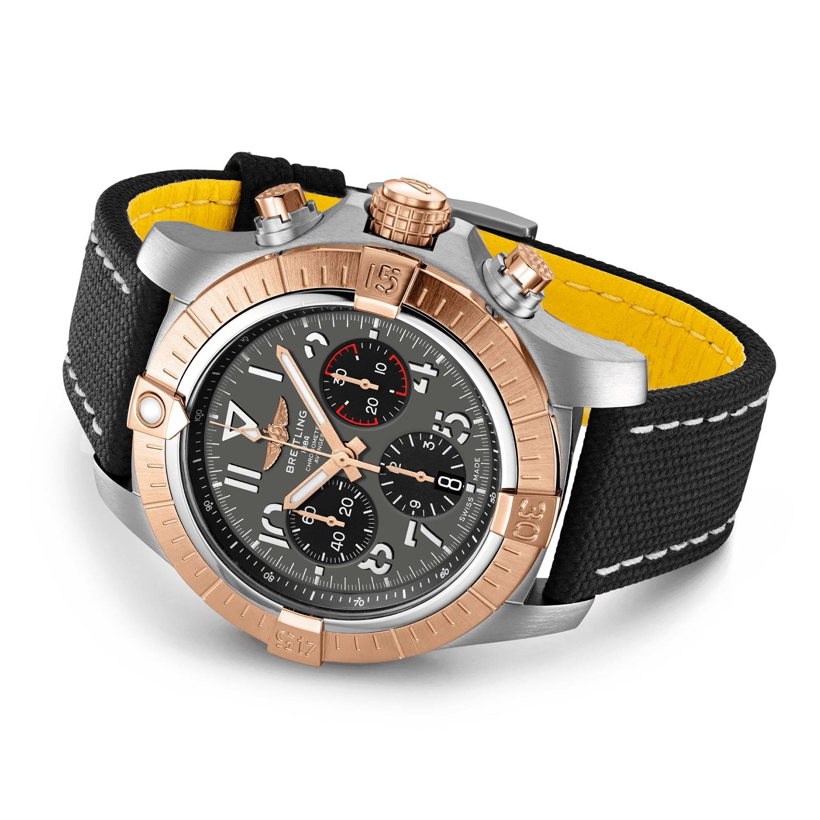 Bold, extremely robust and shock resistant, the Avenger B01 Chronograph 45 combines precision with a powerful design. As a true Breitling Avenger, it can be used wearing gloves and offers unrivalled safety and reliability to any airborne adventurer. The Avenger B01 Chronograph 45 features a sturdy 45mm stainless steel and 18k red gold case, an anthracite dial and a choice of a stainless steel and 18k red gold bracelet, or matching black military leather strap that fits either a stainless steel pin buckle or folding clasp. Thanks to its rugged bezel and its special grip pattern on the crown and chronograph pushers, the Avenger B01 Chronograph 45 can be easily operated wearing gloves. This edition is limited to 250 pieces.