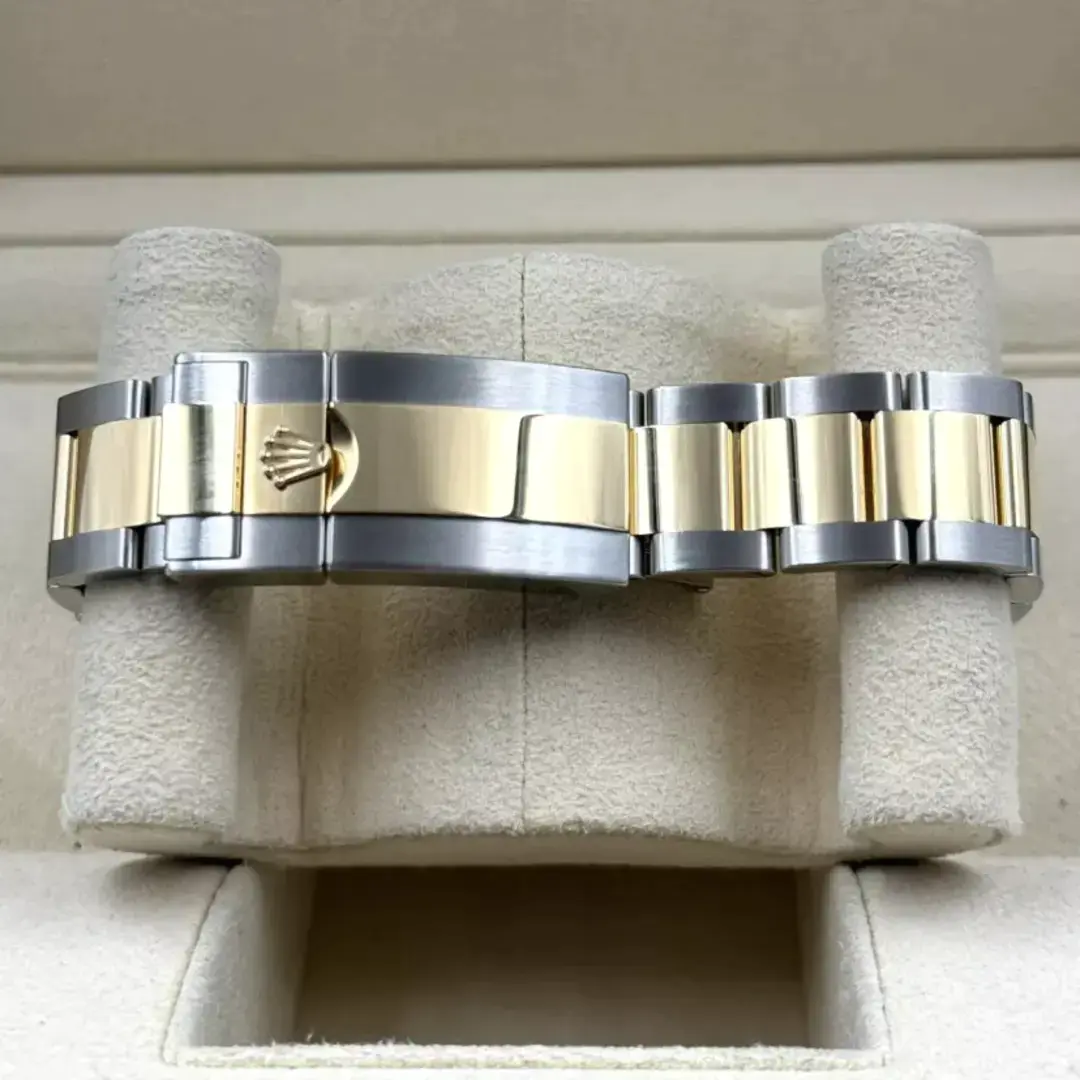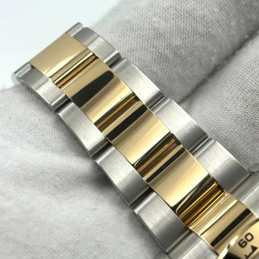 The design, development, and production process of watch bands and buckles, as well as the rigorous tests that need to pass, are fully applied with advanced technology. Like other components of the watch, the strap and buckle will also be inspected by someone to ensure that the product is beautiful and flawless. The Oyster strap is the embodiment of ingenious shape and function, exquisite and charming. This metal strap was introduced in the late 1930s. It consists of three wide, flat links. It is extremely strong and has always been the most widely used strap in the Oyster series.