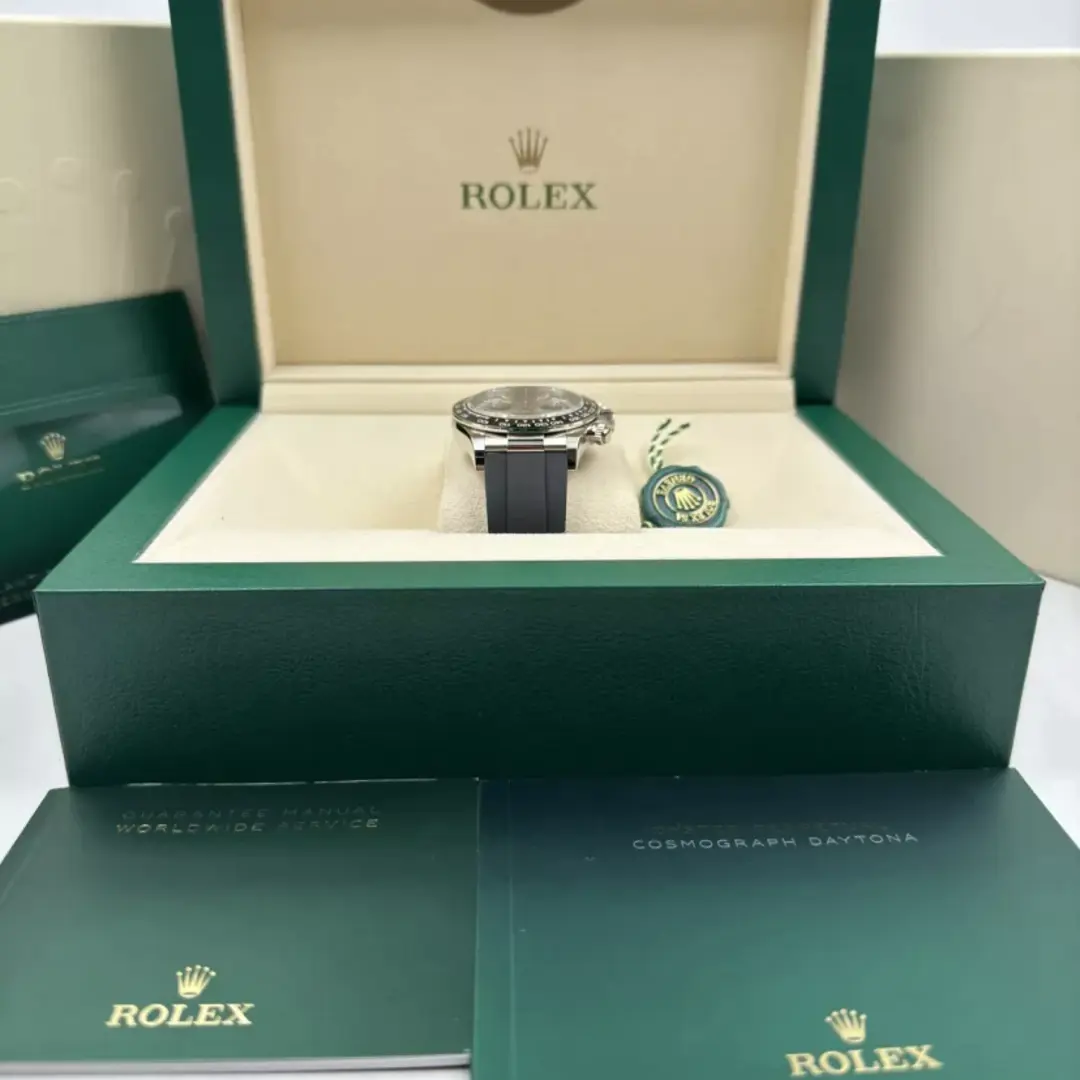 ● Bezel: Black ceramic tachymeter bezel with steel wrapped;