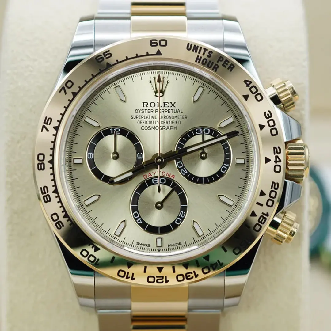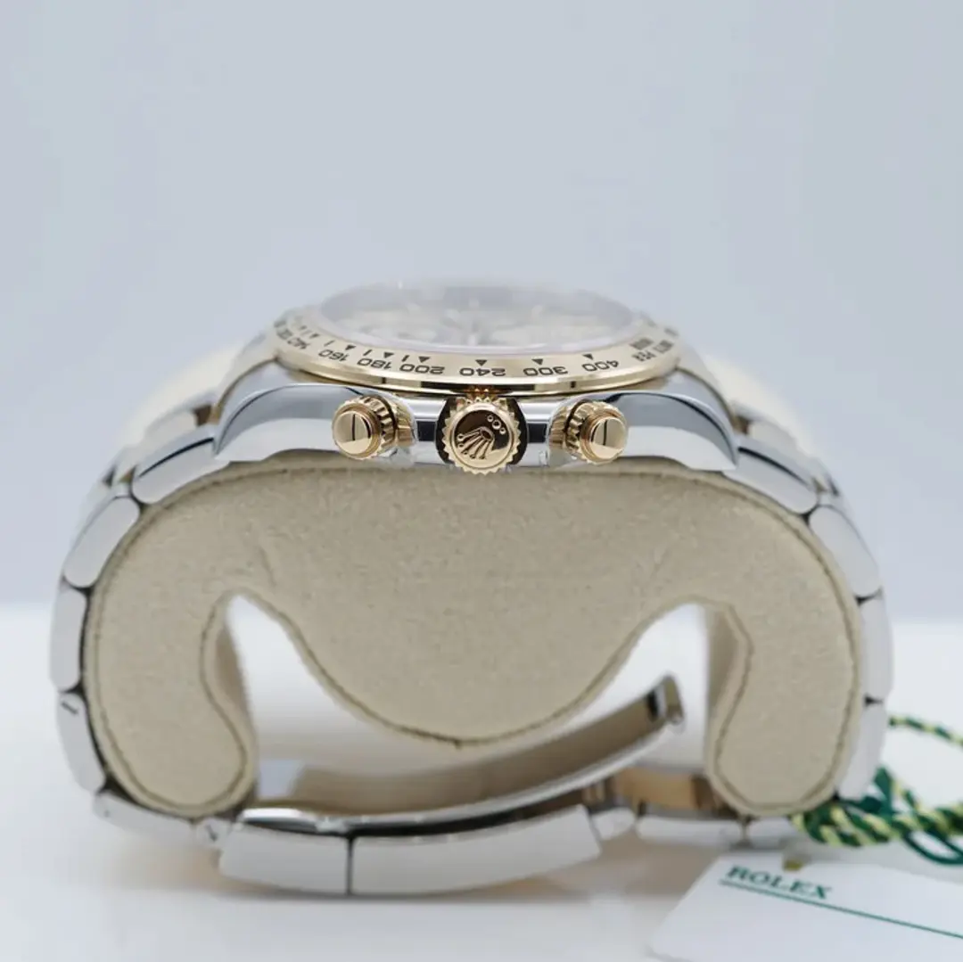 With its tachymetric scale, its three counters and its pushers, the Cosmograph Daytona was designed to be the ultimate timing tool for endurance racing drivers. The bezel features a tachymetric scale to read average speed over a given distance based on elapsed time. This scale offers optimal legibility, making the Cosmograph Daytona the ideal instrument for measuring speeds up to 400 units per hour, expressed in kilometres or miles