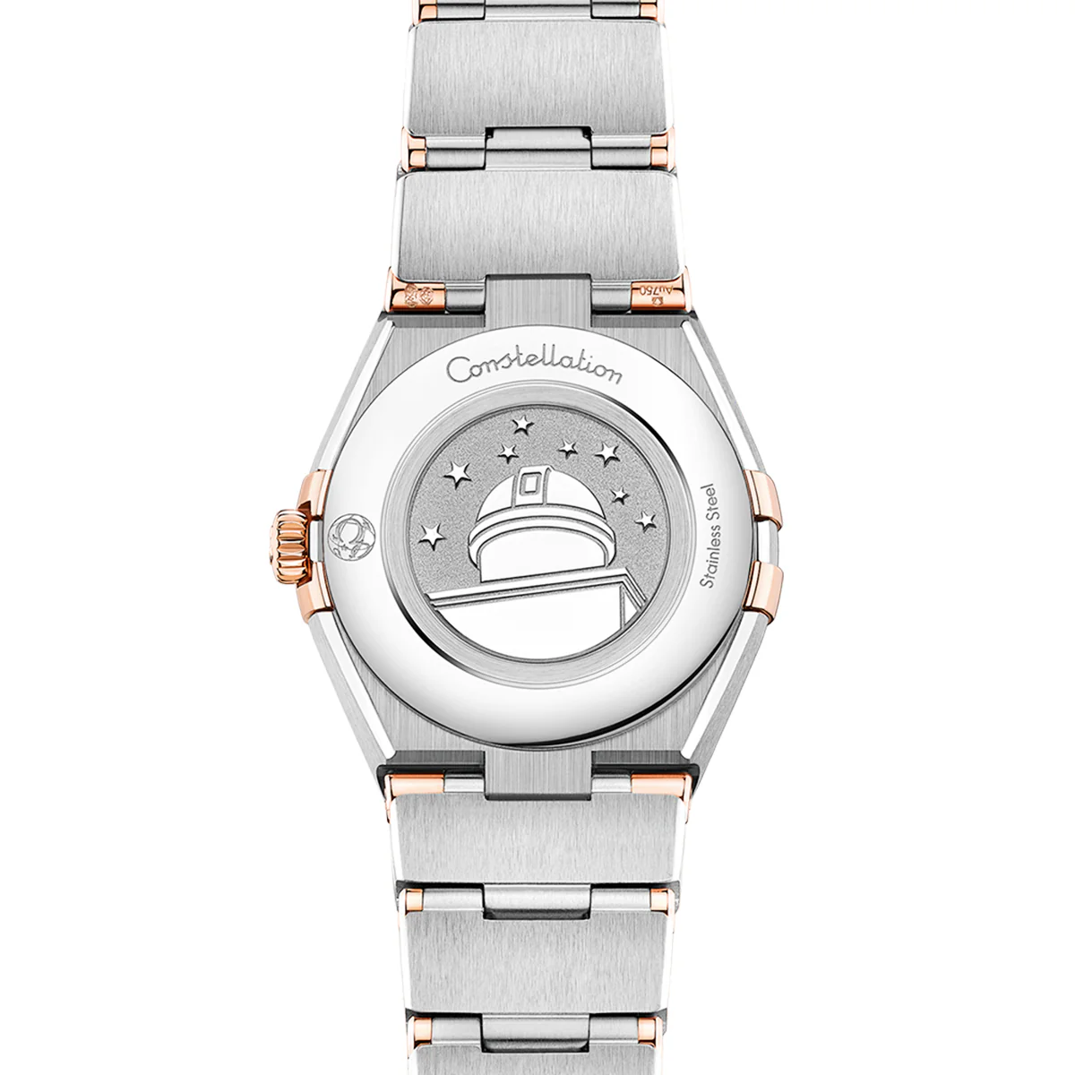 OMEGA Constellation 25mm Steel & 18ct Sedna Gold Aventurine Blue Dial Watch 13125256053002. Stainless steel & 18ct Sedna Gold 25mm case and diamond set bezel all on a matching two-tone steel & 18ct Sedna Gold bracelet. This ladies watch has ablue aventurine glass dialwith 12 diamond set hour markers. Water resistant up to 30m and sapphire crystal glass. Quartz movement.