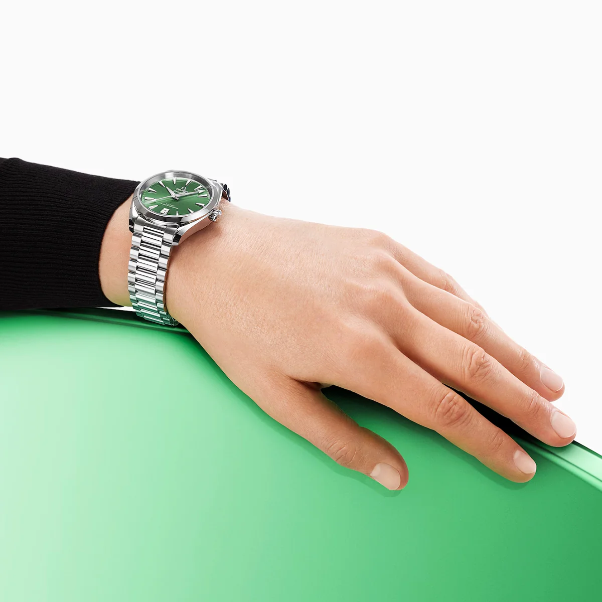 Harnessing OMEGA’s unique maritime heritage, this classic dive watch from the brand’s Seamaster range meets ISO standards and is crafted from stainless steel. The design is named the OMEGA Seamaster Aqua Terra watch and boasts a water resistance of 150 meters with a captivating bay green dial. The steel-on-steel design measures a diameter on the wrist of 38mm. The bay green dial itself is fashioned from brass and its lacquered and sun-brushed centre is home to a set of rhodium-plated hands and indexes treated with a layer of Super-LumiNova for timekeeping in the dark. Its robust stainless steel bracelet Features beautifully rounded polished brushed links that secure around the wrist with an OMEGA-engraved folding clasp. The OMEGA Seamaster Aqua Terra Bay Green watch is topped with an anti-reflective sapphire crystal glass front, Features a screw-in crown, and puts a movement on show through its transparent sapphire-backed case. The OMEGA Seamaster Aqua Terra watch is powered by the Co-Axial Master Chronometer calibre 8800, which Features a date window at 6 o’clock and provides a power reserve of 55 hours once fully wound.