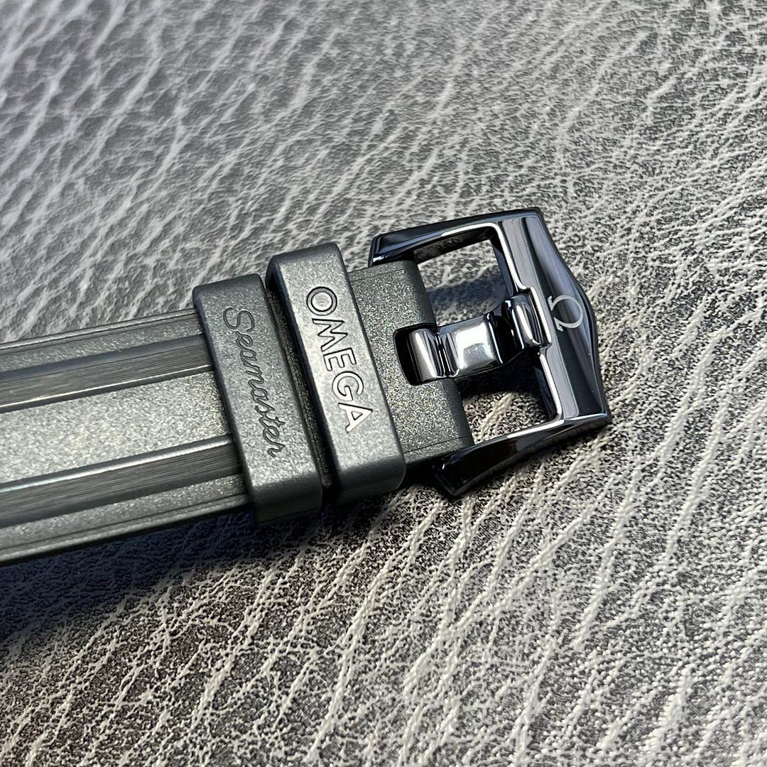 An integrated black rubber strap with a black ceramic buckle completes the watch's bold appearance. A transparent sapphire crystal on the wave-edged case back offers a clear view of OMEGA's Co-Axial Master Chronometer Calibre 8806 movement. This watch is designed to withstand strong magnetic fields, even those greater than 1.5 tesla (15,000 gauss), ensuring outstanding precision and performance.