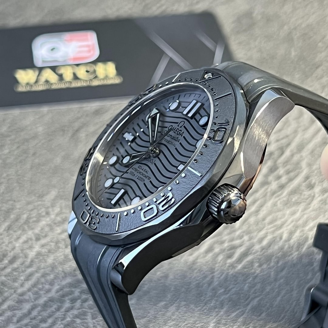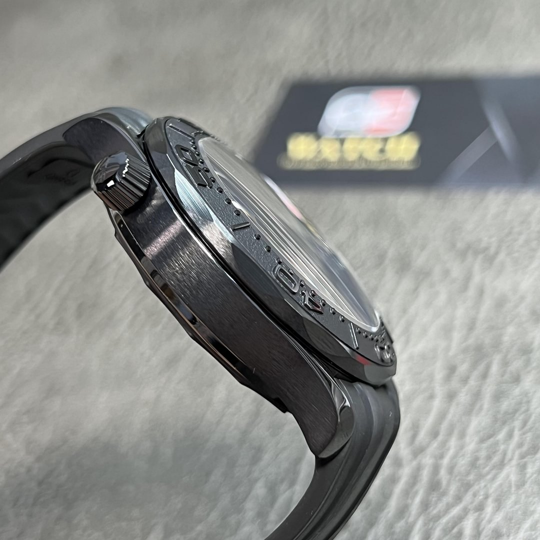 This striking 43.50mm model is crafted with black ceramic [ZrO2], creating a distinctive and uniform look. The case, bezel, wave-pattern dial, crown, and helium escape valve all share the same exquisite material. To maintain visibility without compromising the aesthetic, anthracite Super-LumiNova has been applied to the diving scale, black PVD indexes, skeleton hands, and the dot at 12 o'clock.