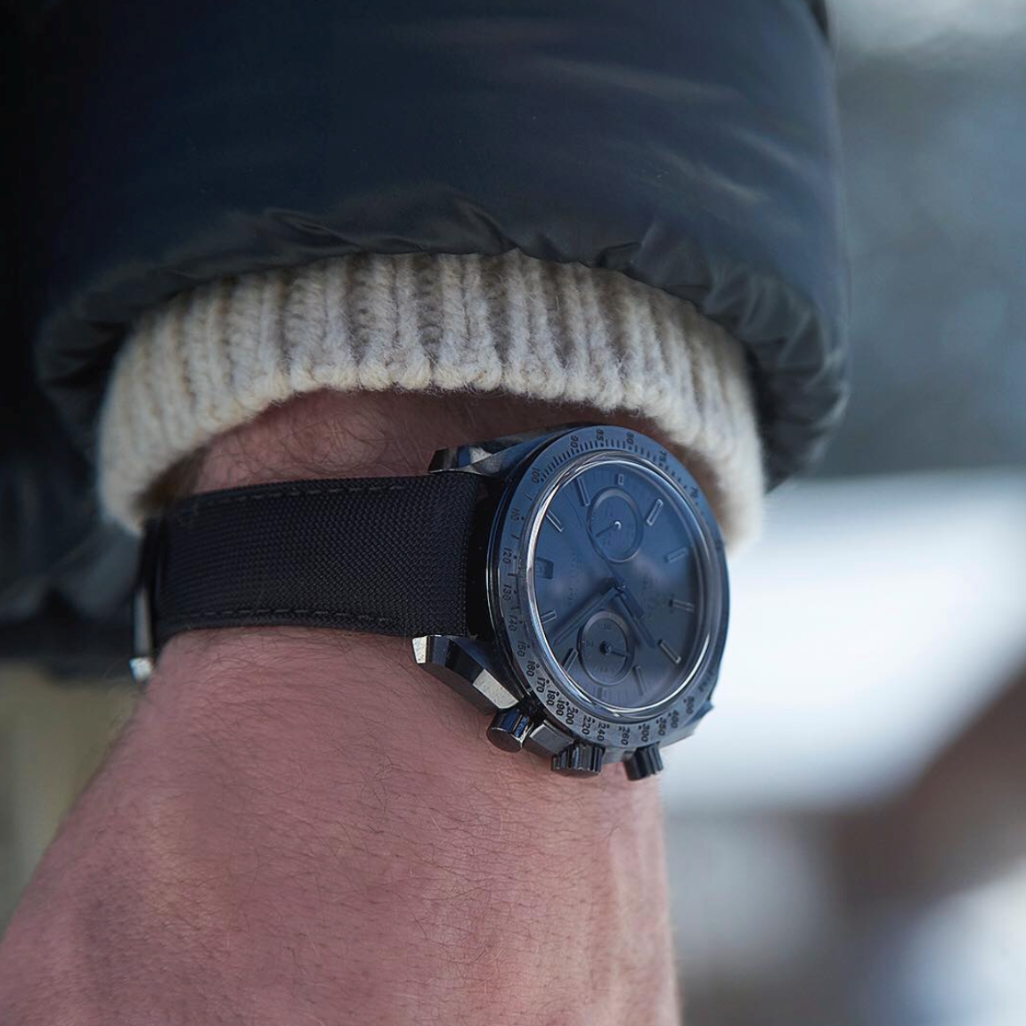 It was the adventures and the accomplishments of the Apollo 8 astronauts that inspired the all-black, ceramic OMEGA Speedmaster Dark Side of the Moon, but it is the mystique of the Earth’s nightlight and its ever-changing yet constant presence that has spurred the creation of the Speedmaster Dark Side of the Moon "Black Black". This 44.25 mm model has a polished and brushed black ceramic case body, a matt black ceramic dial and a black ceramic clasp on a black coated nylon fabric strap. Giving this model its nickname are its brushed blackened Moonwatch-style hands and blackened applied indexes – all of which are coated with black Super-LumiNova. The familiar sub-dials at 3 and 9 o’clock are also matt black and the black ceramic bezel has a black lacquered tachymeter scale. At its heart is the OMEGA Co-Axial calibre 9300.