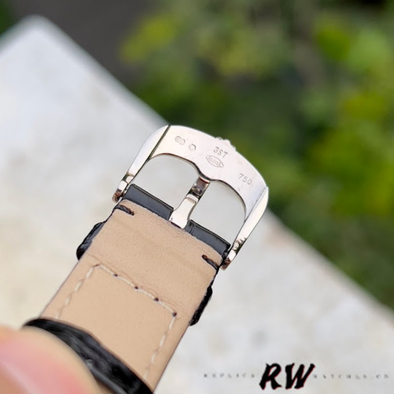 Rolex Cellini Dual Time 50529 Silver Sunburst Dial Black Leather Strap 39mm Mens Replica Watch,39mm white gold case, domed and fluted double bezel, screw down winding crown, domed sapphire crystal, Silver Sunburst Dial with white gold hour markers and hands, Sub-dial at 6 o'clock displaying second time zone and day-night indicator, Shiny black alligator leather strap with white gold buckle.