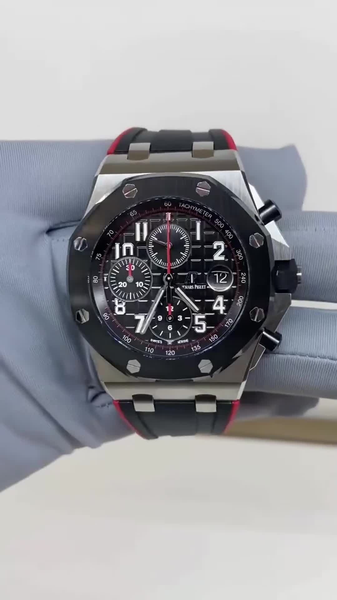 AUdemars Piguet Royal Oak Offshore Chronograph Panda dial Ceramic Bezel on Black Rubber Strap 44mm Super Clone