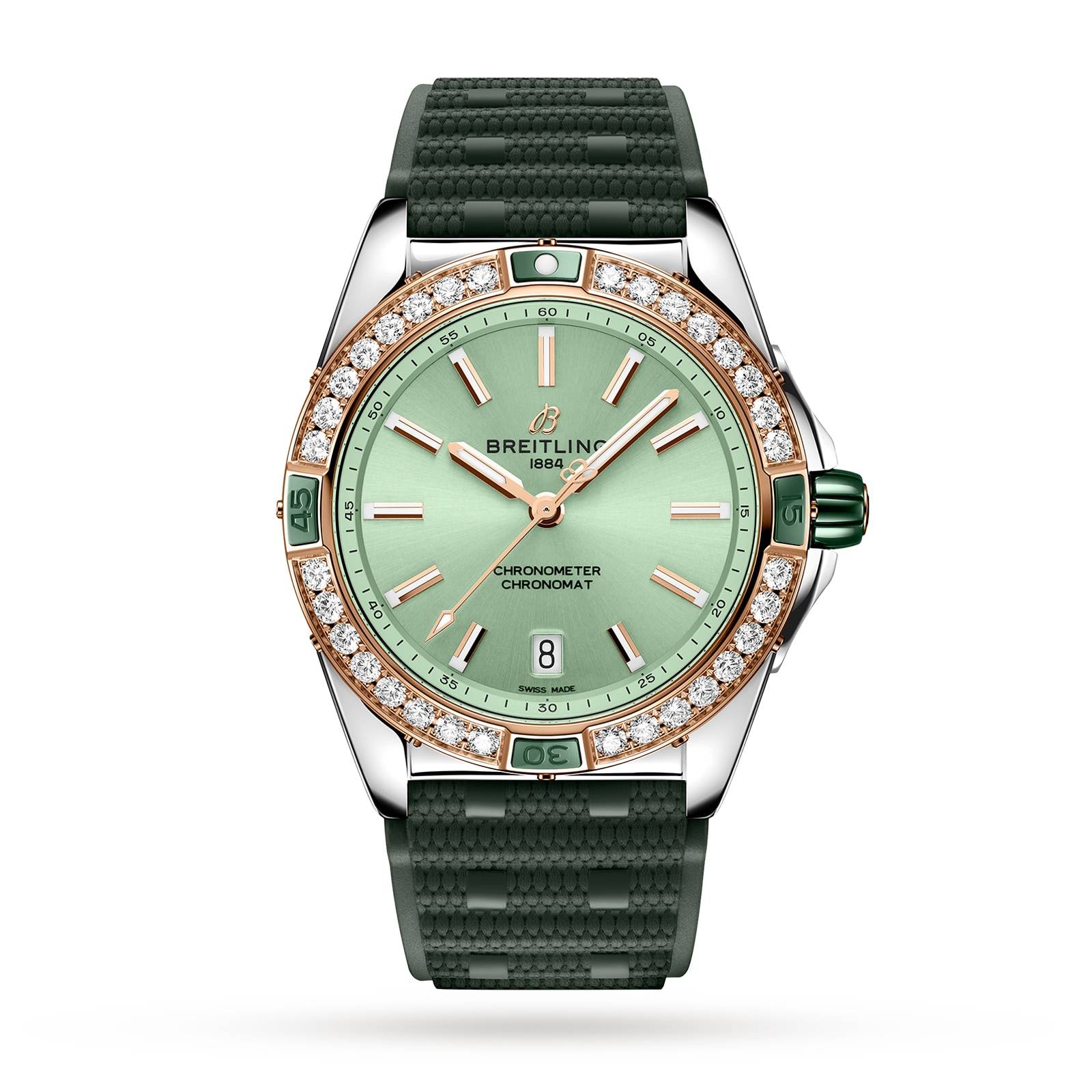 Breitling Super Chronomat Automatic 38 Green Stainless Steel & 18ct Rose Gold Rubber Strap-P17532166
